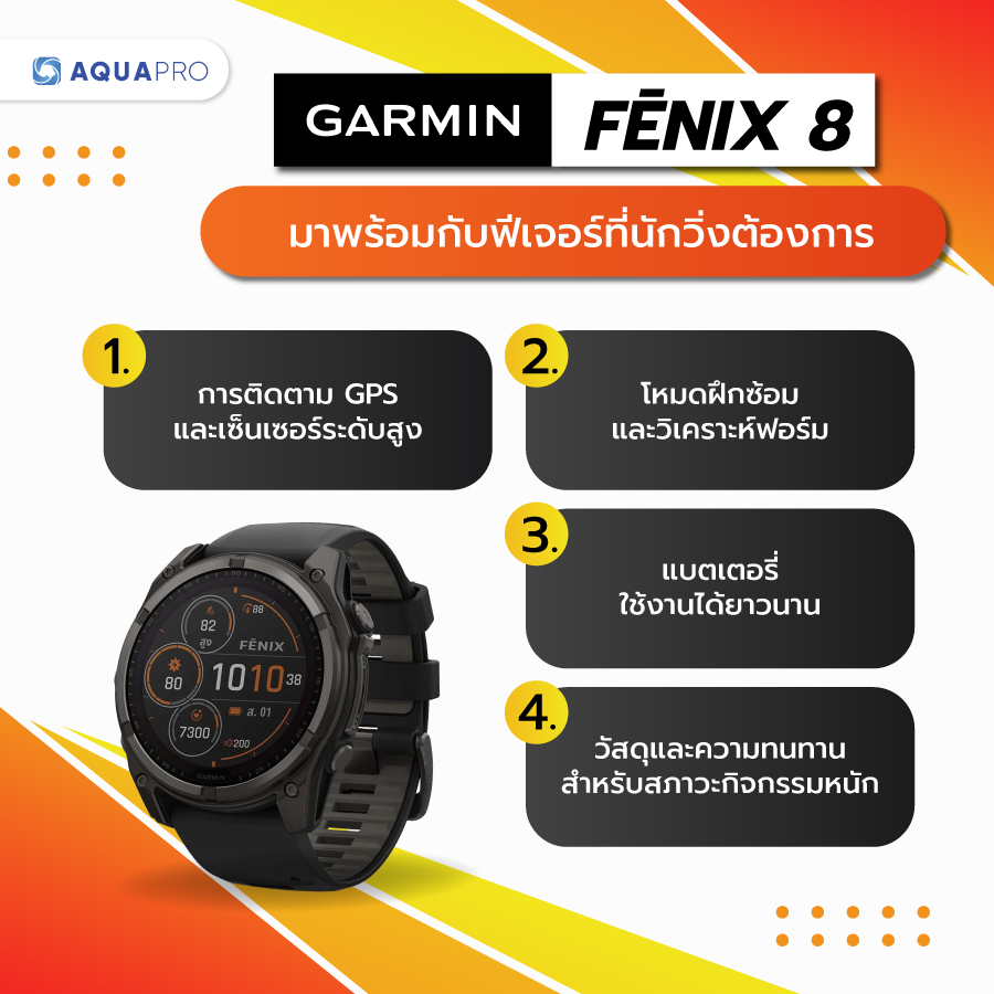หากคุณคือหนึ่งในนักกีฬา นักผจญภัย หรือนักวิ่งมืออาชีพ ไม่ควรพลาด กับ Garmin Fenix 8 Series ที่สุดของนวัตกรรมที่ถูกสร้างมาเพื่อนักวิ่งที่ต้องการก้าวข้ามขีดจำกัดตัวเอง เพราะนี่ไม่ใช่แค่นาฬิกาจับเวลา แต่เป็นการวิเคราะห์เชิงกลยุทธ์ที่ทำให้ทุกการวิ่งมีประสิทธิภาพสูงสุด แต่การซื้อ Fenix 8 ที่เป็นนาฬิการะดับพรีเมียม ไม่ได้ขึ้นอยู่ที่ตัวผลิตภัณฑ์เท่านั้น แต่ขึ้นอยู่กับบริการและสิทธิประโยชน์จากตัวแทนจำหน่ายด้วย