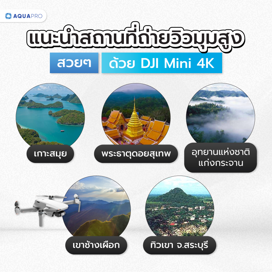 การถ่ายภาพด้วยโดรนในสมัยนี้ไม่ใช่เรื่องไกลตัวอีกต่อไป เนื่องจากโดรนถ่ายภาพในปัจจุบันได้มีขนาดที่เล็กกะทัดรัดพกพาสะดวก นอกจากนี้ยังมีราคาที่เข้าถึงได้มากขึ้นอีกด้วย และหนึ่งในแบรนด์โดรนชื่อดังที่พูดชื่อไปทุกคนต้องอ๋อ! นั่นก็คือ DJI นั่นเอง วันนี้ Aquapro ของเราก็ได้มีโดรนจิ๋ว แต่สเปคไม่จิ๋วมาแนะนำให้เพื่อนๆ ได้รู้จักกันอย่าง DJI Mini 4K