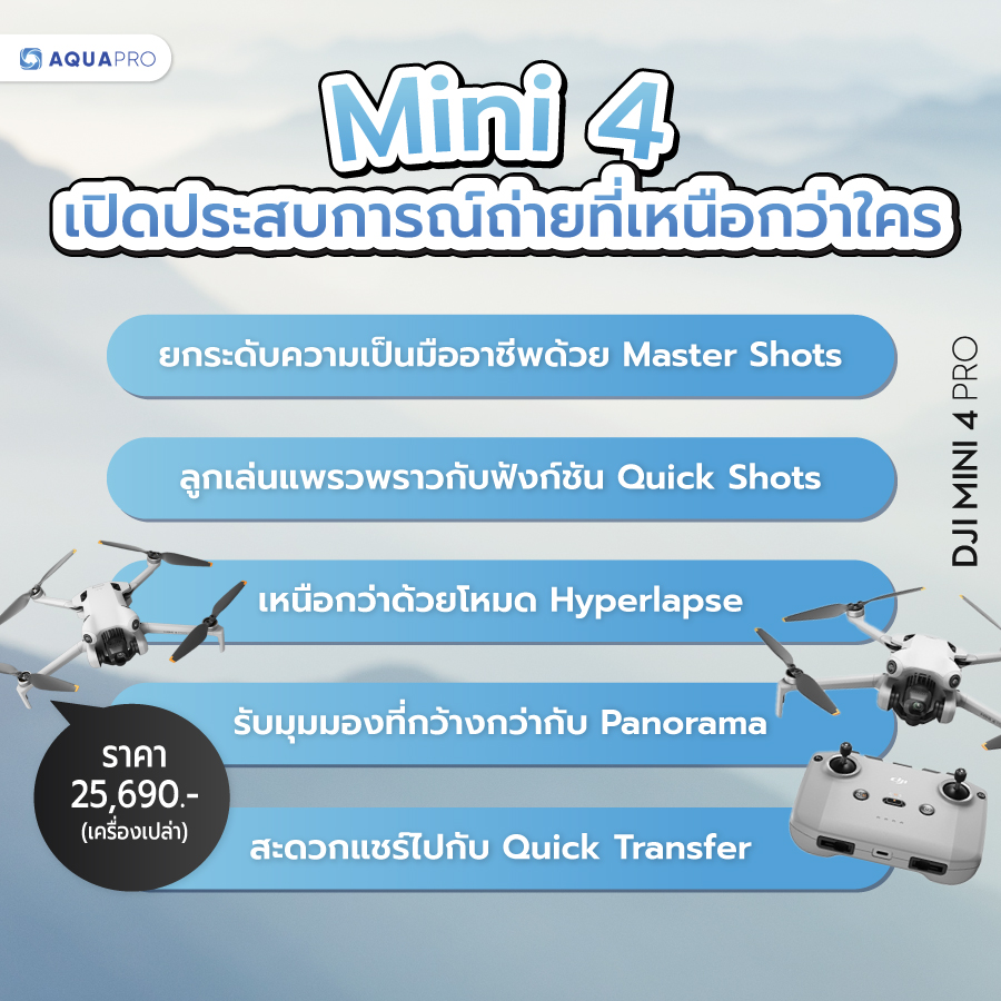 เลือกซื้อ DJI Mini 4 Pro ที่ Aquapro รับประกันศูนย์ไทย