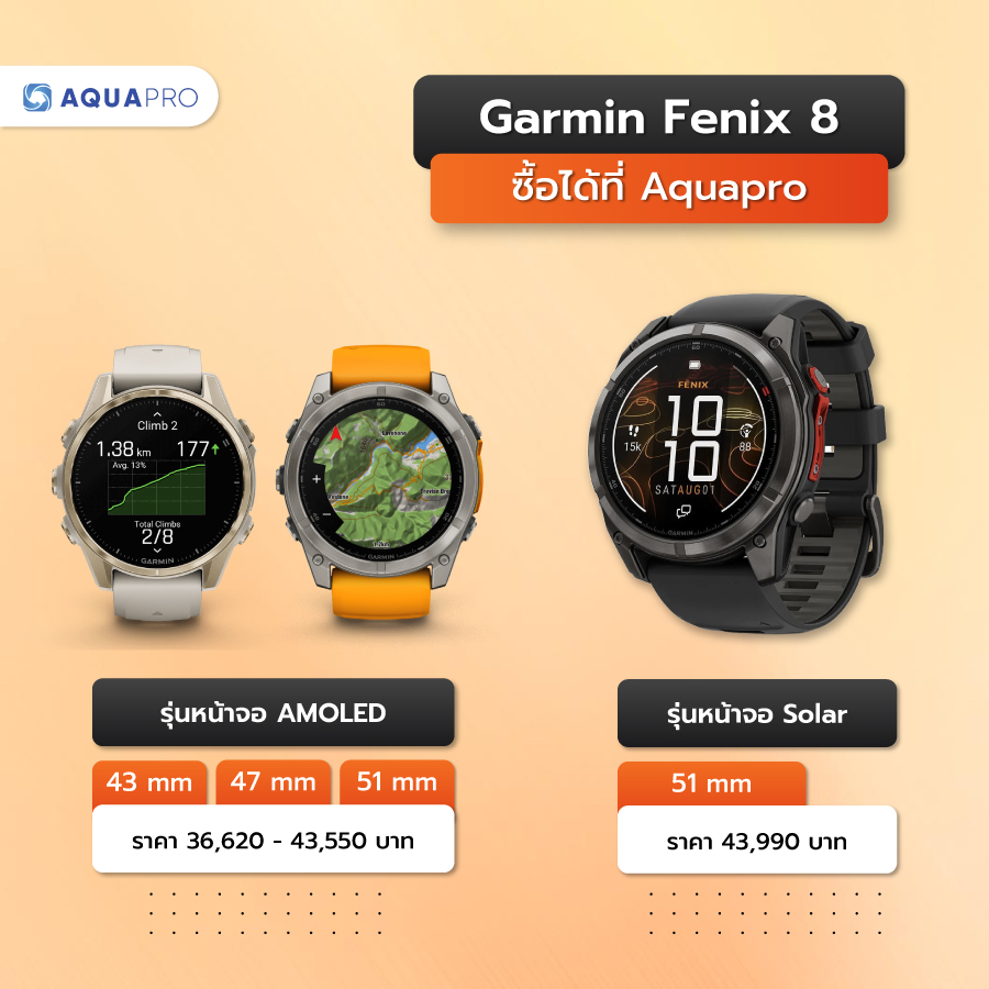 ติดตามทุกฝีก้าวกับ Garmin Fenix 8 ซื้อได้ที่ Aquapro