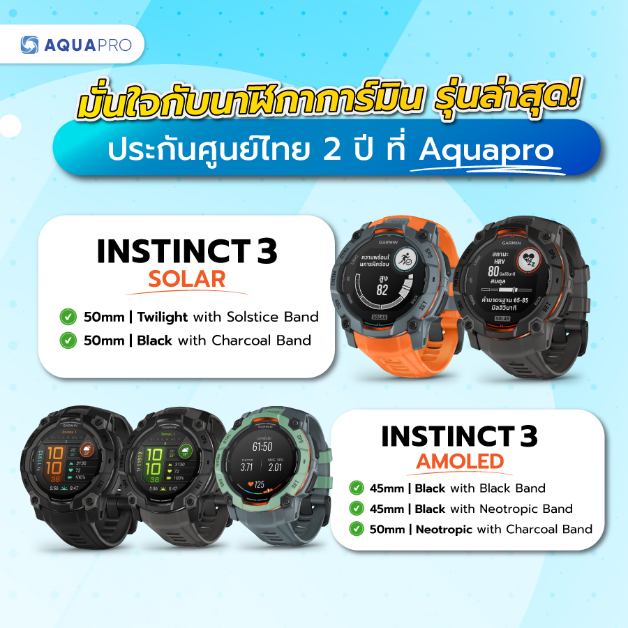 มั่นใจกับนาฬิกาการ์มิน รุ่นล่าสุด ประกันศูนย์ไทย 2 ปี ที่ Aquapro