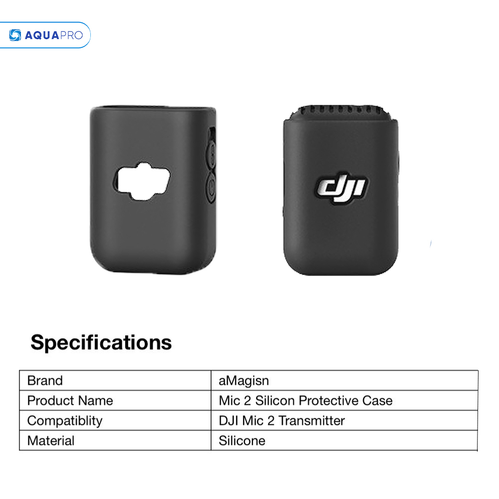 aMagisn DJI Mic 2 Silicone case (Black) Specifications Brand : aMagisn Product Name : Mic 2 Silicon Protective Case Compatiblity : DJI Mic 2 Transmitter Material : Silicone