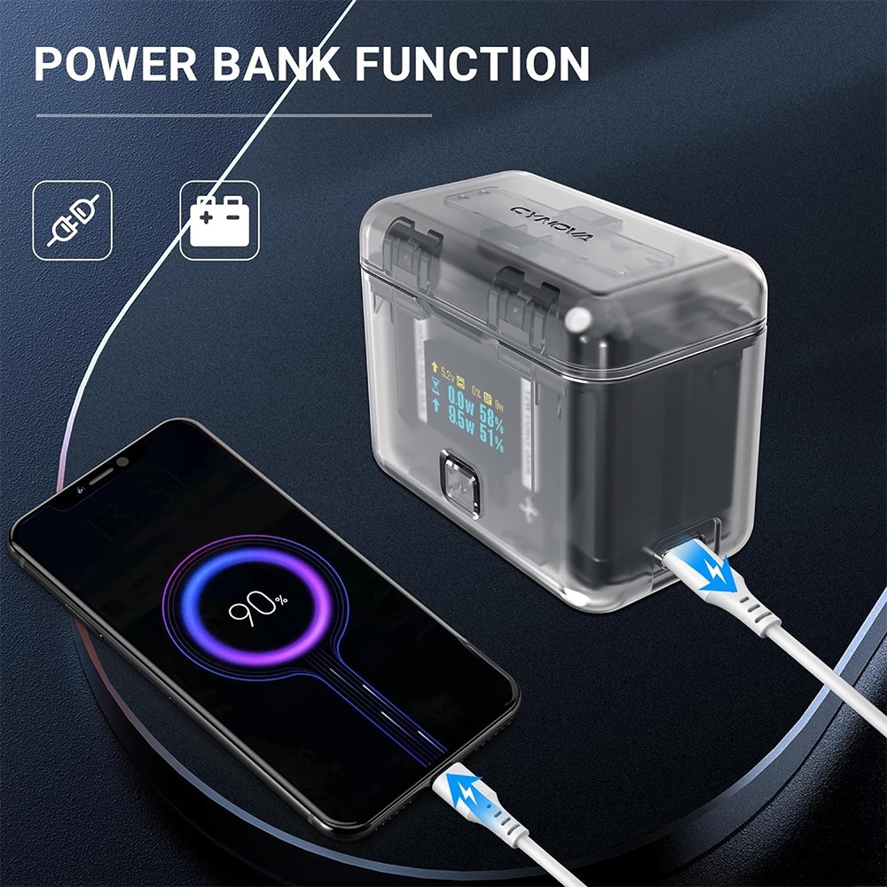 1,Intelligent Charging & Two Way Charger: This Insta360 X4 battery charger is designed to safely store and charge Insta360 X4 batteries. It’s equipped with 2 independent 15W Max charger channels for super-fast charging and can also function as a portable charger for external devices.
