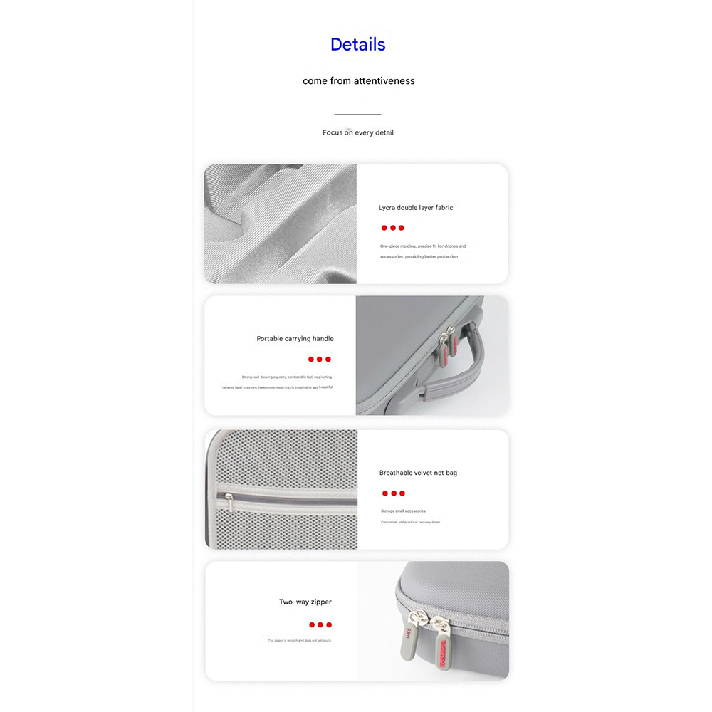 – Premium PU Leather: Made from high-quality PU leather, the carrying case offers durability and a sleek, stylish appearance, ensuring your drone is safely stored in a fashionable manner.