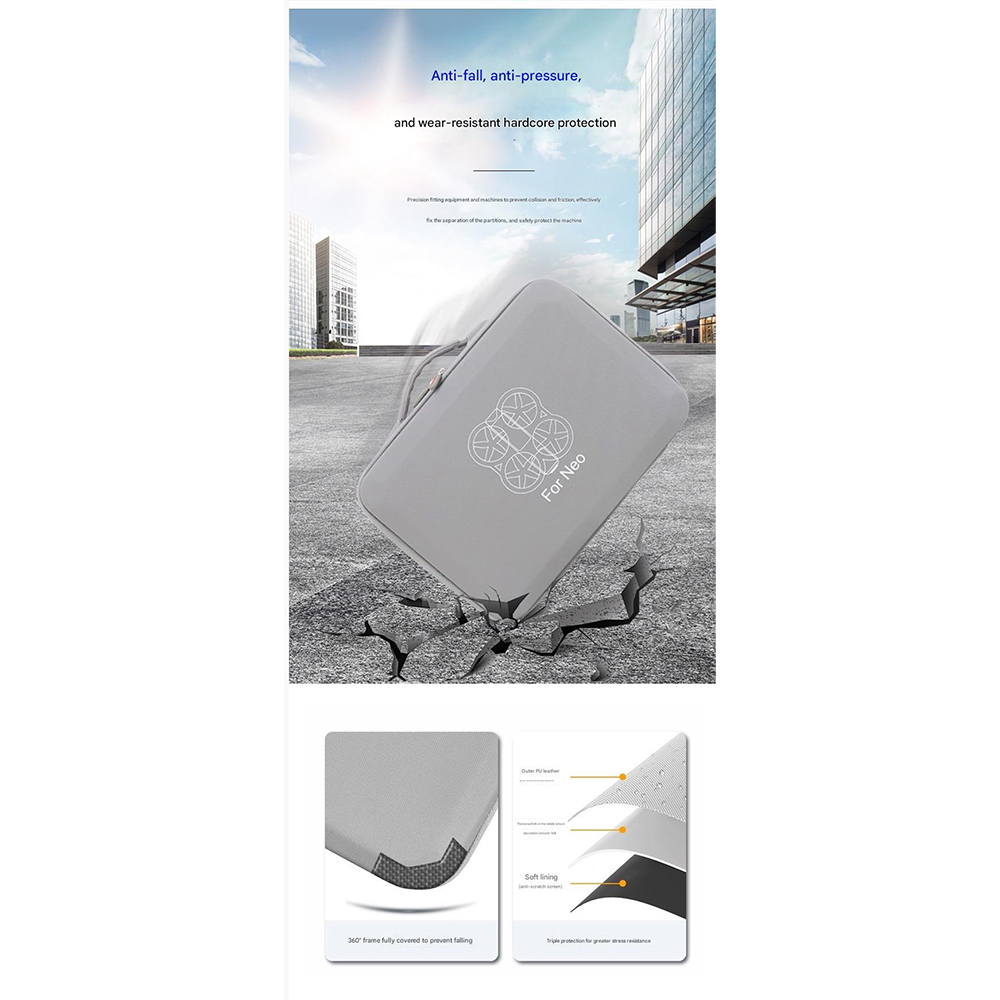– Drop-Resistant Design: This storage bag features a drop-resistant construction, providing excellent protection for your DJI NEO drone against impacts and shocks during travel.