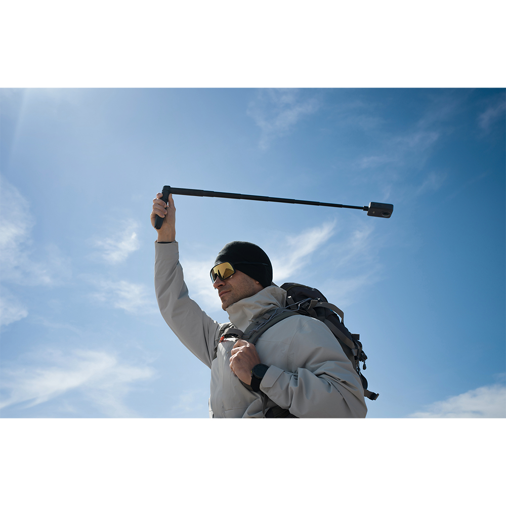 Pair it with the invisible selfie stick* to easily capture stunning panoramic images frozen in time. Equipped with a 1/4″ threaded connector, it can be used directly as a tripod**.