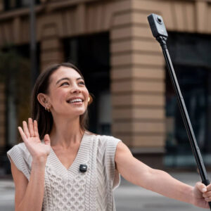 ใช้งานร่วมกับอุปกรณ์เสริมซีรีส์ Osmo Action ได้ พร้อมรูเกลียวขนาด 1/4 นิ้ว สลับโหมดถ่ายภาพได้อย่างง่ายดายด้วยไม้เซลฟี่และอะแดปเตอร์ปลดเร็วแบบปรับได้