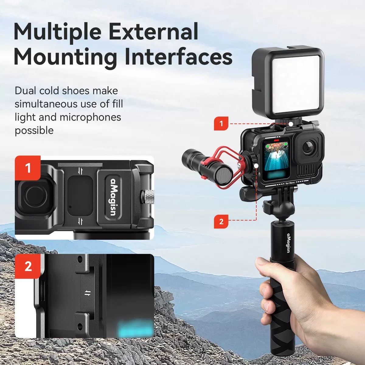 Gopro 13 / 12 / 11 / 10 / 9 aMagisn Metal Horizontal-Vertical Frame Case เฉพาะกรอบ เฟรม เคสอลูมิเนียม กันตก กล้องแอ็คชั่น Gopro 13/12/11/10/9