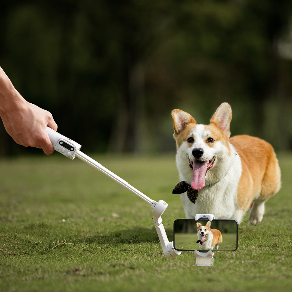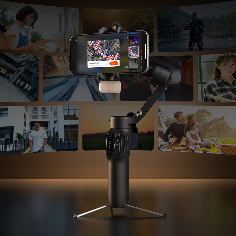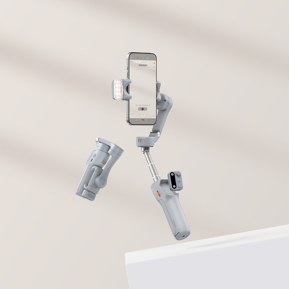 This portable 3-axis smartphone gimbal is perfect for beginners who want to start filming with ease. Its innovative detachable remote makes capturing selfies a breeze, and the reversible magnetic fill light provides ideal lighting effects for both front and rear shots. With a built-in extension rod and tripod, you can effortlessly explore creative angles, and free your hands for vlogging and live streaming!