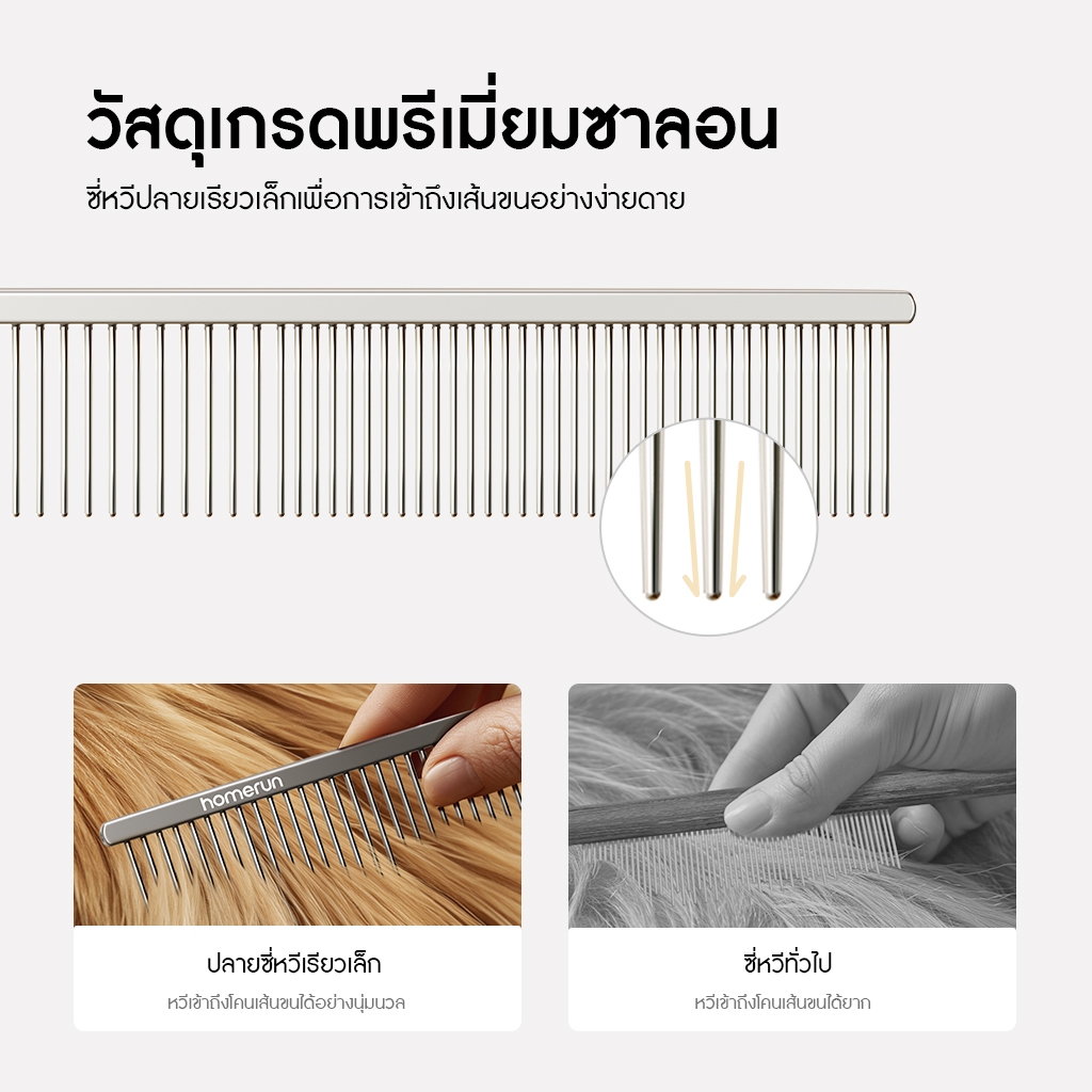 ซี่หวีปลายเรียวเล็กเพื่อการเข้าถึงเส้นขนอย่างง่ายดาย