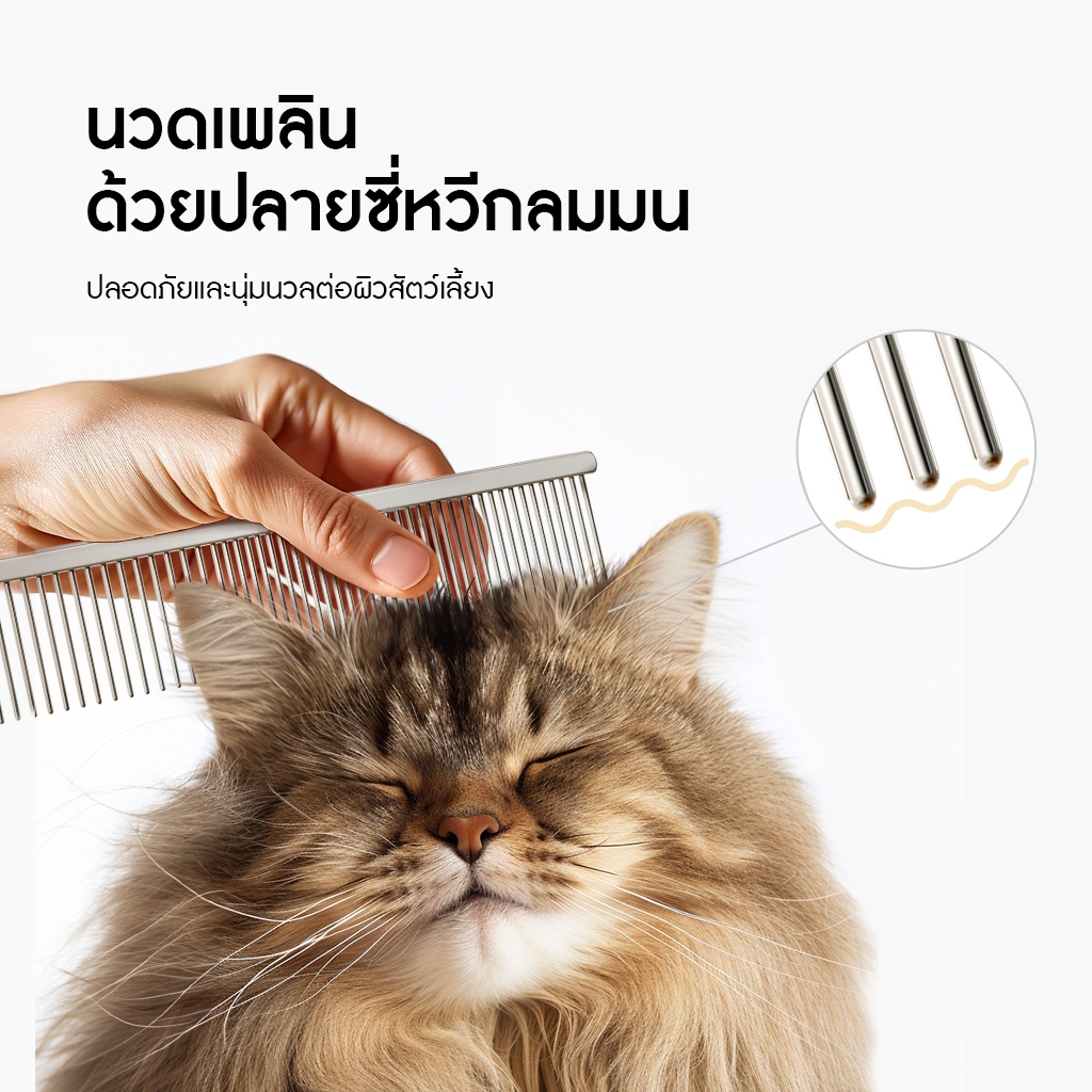 นวดเพลินด้วยปลายซี่หวีกลมมน ปลอดภัยและนุ่มนวลต่อผิวสัตว์เลี้ยง