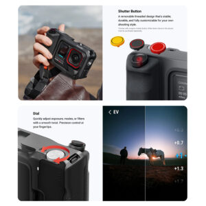 Turn your action camera into a point-and-shoot with lossless zoom, exposure control, mode switching, and other features right on the grip.