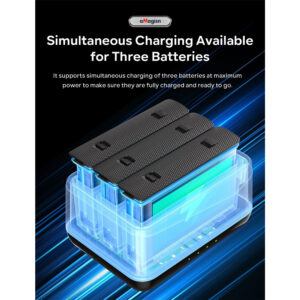 Safely charge up to three batteries at once. Each slot charges independently to prevent overcharging. Supports PD fast charging, getting your battery to 80% in 26 minutes and 100% in just 43 minutes.