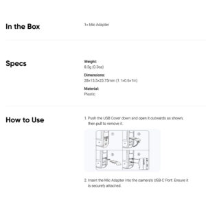 1. The Mic Adapter’s USB-C Port is for charging only. It cannot be used to transfer data.