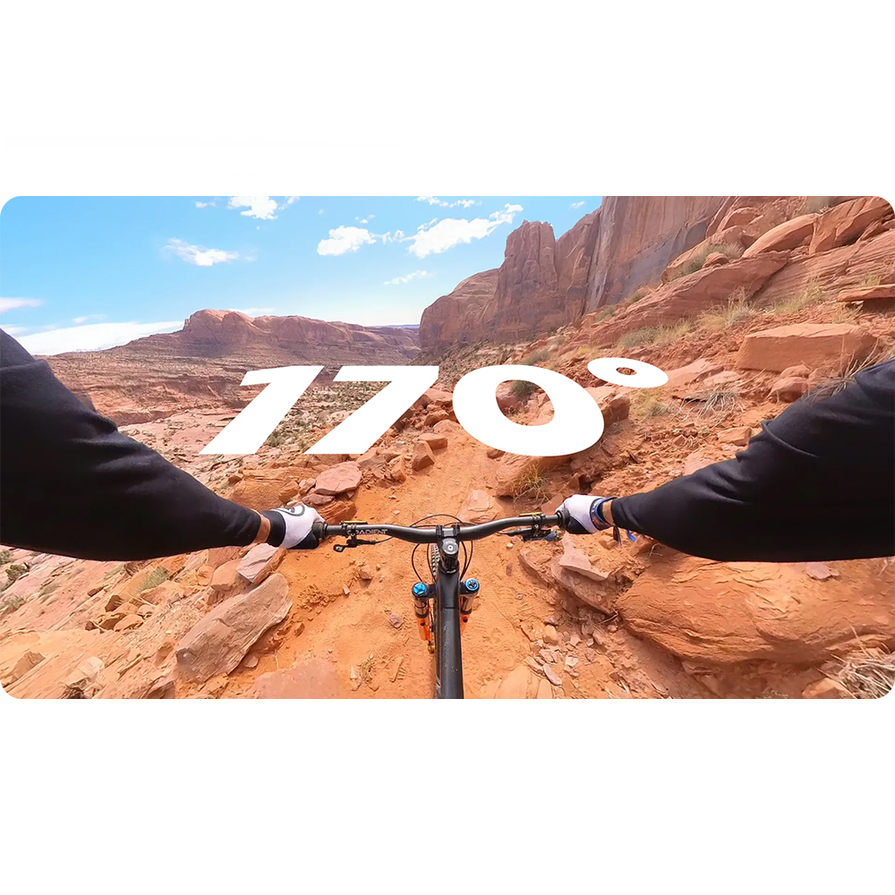 Capture more of your handlebars or skis with Single-Lens Mode’s FreeFrame Video—maximizes your POV with an ultra-wide 170º field of view.