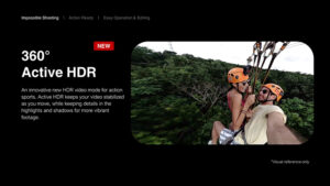 – 360° Active HDR: An innovative new HDR video mode for action sports. Active HDR keeps your video stabilized as you move while keeping details in the highlights and shadows for more vibrant footage.