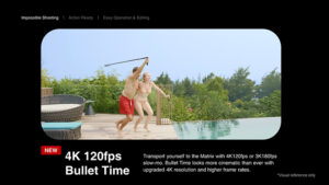 – 4K 120fps Bullet Time: Transport yourself to the Matrix with 4K120fps or 3K180fps slow-mo. Bullet Time looks more cinematic than ever with upgraded 4K resolution and higher frame rates.