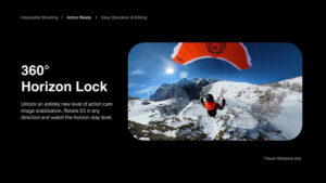 – 360° Horizon Lock: Unlock an entirely new level of action cam image stabilization. Rotate X3 in any direction and watch the horizon stay level.