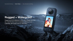 – Rugged + Waterproof: Rugged and IPX8 waterproof to 33ft (10m) straight out of the box. Grab the Dive Case for seamless stitching of your underwater 360 footage down to 164ft (50m).