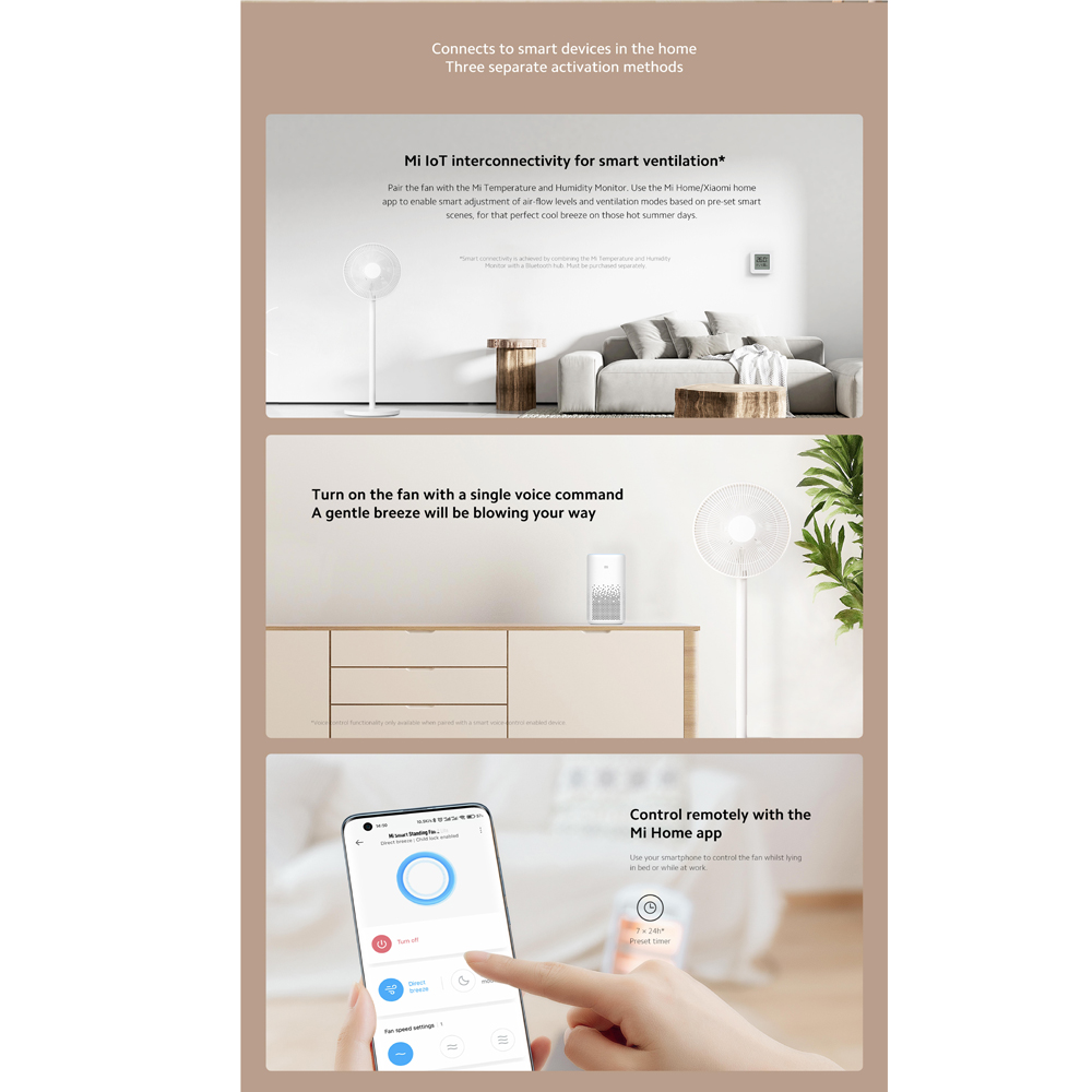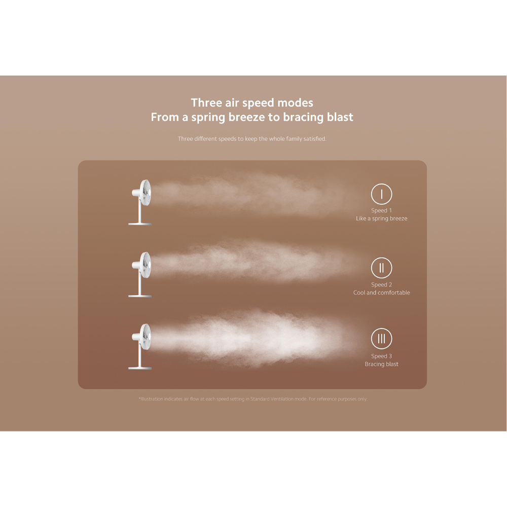 ปรับความแรงได้ 3 ระดับ (หลังใบพัด และในแอปพลิเคชั่น Mi Home)