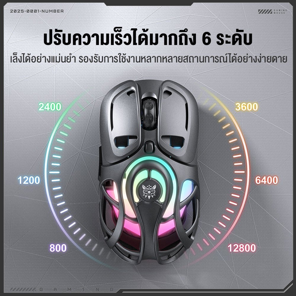 DPI 6 ระดับ 800–12800 ปรับความแม่นยำได้ทันทีตามเกม