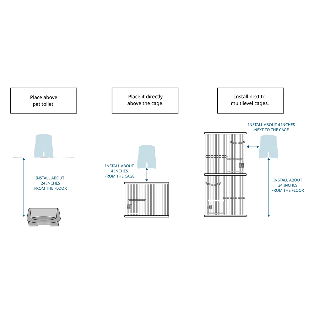 ในขณะที่โซลูชันดับกลิ่นแบบดั้งเดิม เช่น สเปรย์ปรับอากาศ เครื่องฟอกอากาศแบบกรอง หรือเทียนหอมอโรมา เป็นโซลูชันหลังจากกลิ่นแพร่กระจายไปทั่วห้องแล้ว แนวทางการติดผนังของ QAIS-air- 04 จะหยุดกลิ่นสัตว์เลี้ยงที่ต้นเหตุตลอด 24 ชั่วโมงทุกวัน ก่อนที่กลิ่นจะแพร่กระจาย ไม่ว่าห้องของคุณจะมีขนาดใหญ่แค่ไหนก็ตาม
