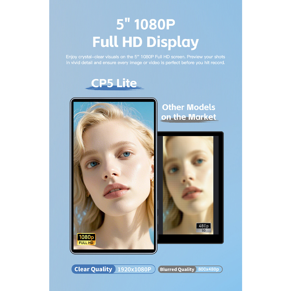 Enjoy crystal-clear visuals on the 5″ 1080P Full HD screen. Preview your shots