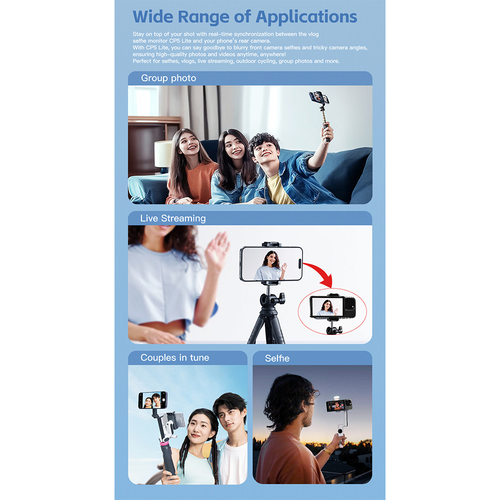 Perfect for selfies, group photos, or remote shooting,