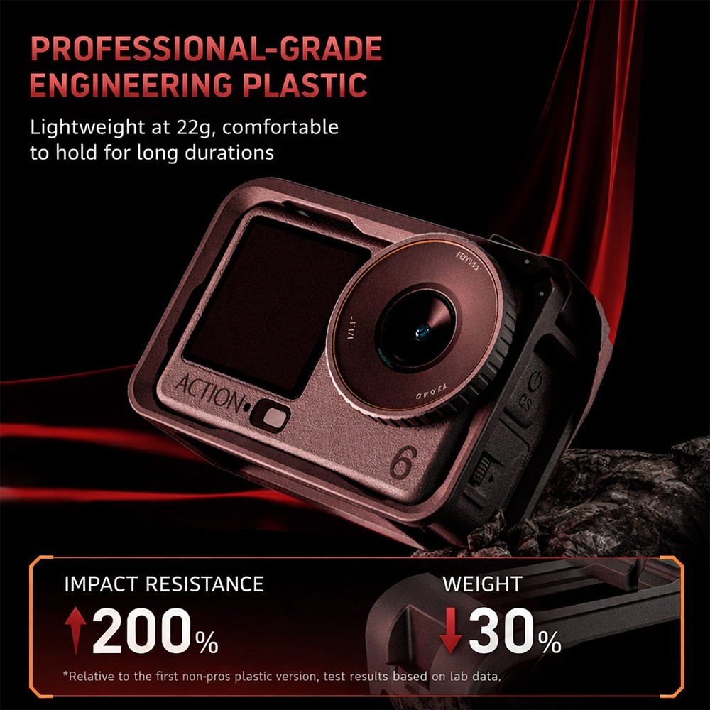 2.การออกแบบน้ำหนักเบา ประสบการณ์ที่ไร้รอยต่อ ด้วยการใช้วัสดุที่มีความแข็งแรงสูง ทำให้มีน้ำหนักเบาในขณะที่ยังคงความทนทานเมื่อติดตั้งแล้ว จะไม่มีน้ำหนักหรือปริมาตรเพิ่มขึ้นเลย ทำให้ยังคงความสะดวกในการพกพาและสัมผัสของ Action 6 ได้อย่างสมบูรณ์แบบ