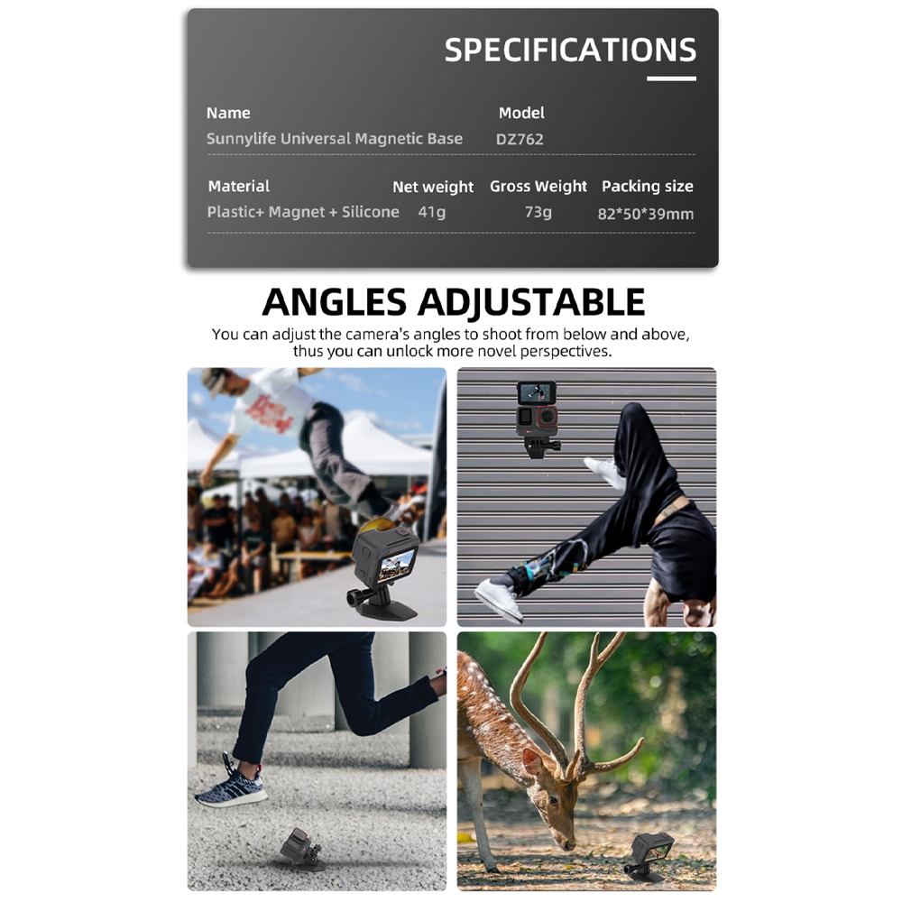 Sunnylife DZ762-D DJI 360 / Pocket 3 / Insta360 X5 / Action 4 Universal Magnetic Base Action Camera Mount Angles Adjustable