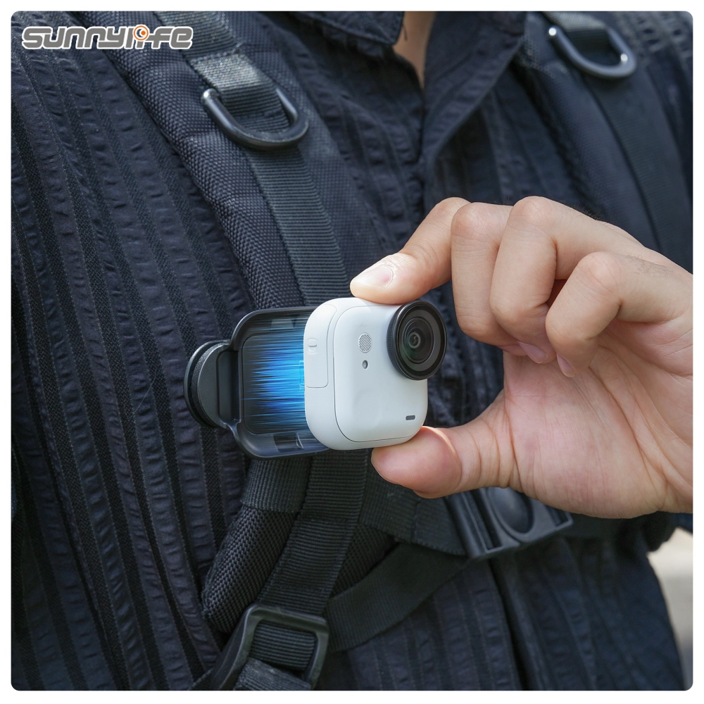Magnetic Backpack Clip Design: คลิปแม่เหล็กออกแบบพิเศษสำหรับกล้อง Insta360 GO Ultra สามารถติดกับสายสะพายกระเป๋าได้ทั้งแนวตั้งและแนวนอน ใช้งานสะดวกในทุกสถานการณ์