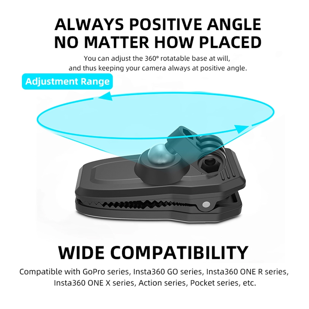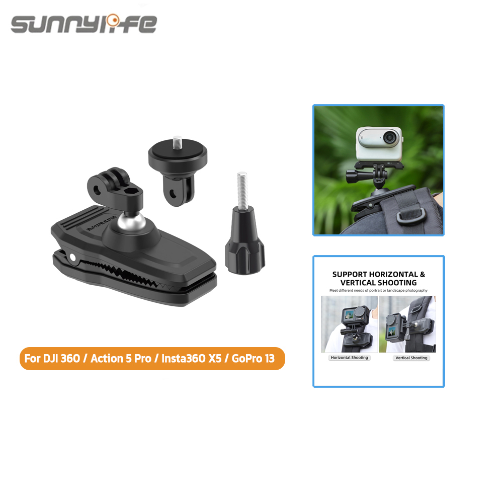 Sunnylife ZJ666-D DJI 360 / Action 5 Pro / Insta360 X5 / GoPro 13 – 360 Degree Rotation Swivel Backpack Clip Magnetic Suction Action Camera Mount