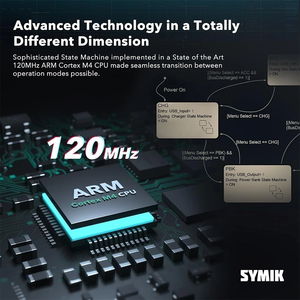 Advanced Technology in a Totally Different Dimension Sophisticated State Machine implemented in a State of the art 120MHz ARM Cortex M4 CPU made seamless transition between operation modes possible. Elaborate Algorithm which detects the max power point of 5V power source so that you can have fastest charging speed in limited power conditions.