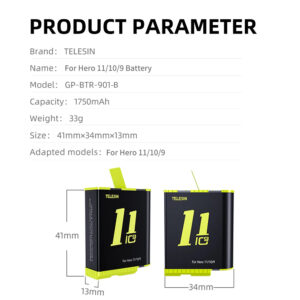 1 x Telesin gopro battery for GoPro Hero 11, GoPro Hero 10, GoPro Hero 9 black