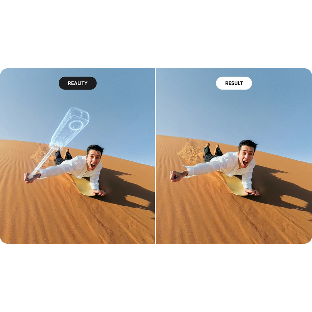 The selfie stick remains completely invisible in 360º shots for impossible third-person perspectives.