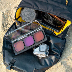 Includes red, magenta and snorkel filters, protective case and camera tethers