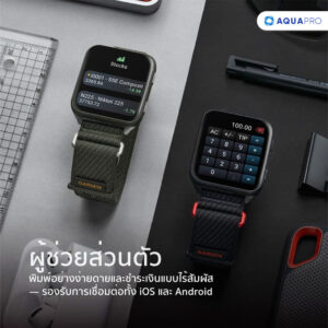 มาพร้อมตัวเรือนที่ผลิตด้วยวัสดุไทเทเนียม ซึ่งทำให้มีคน้ำหนักเบา ประมาณ 40 กรัม และมีความบางเพียง 8 มม. พร้อมได้รับการติดตั้งแผงหน้าจอ AMOLED ขนาด 2 นิ้ว ความละเอียด 448 x 486 พิกเซล ซึ่งป้องกันรอยด้วยกระจกแซฟไฟร์ โดยรองรับโหมดจอ Always-On, ติดตั้งลำโพงและไมโครโฟนในตัว สำหรับโทรออกได้โดยตรง และไฟฉาย LED ช่วยส่องสว่างในที่มืดได้เป็นอย่างดี