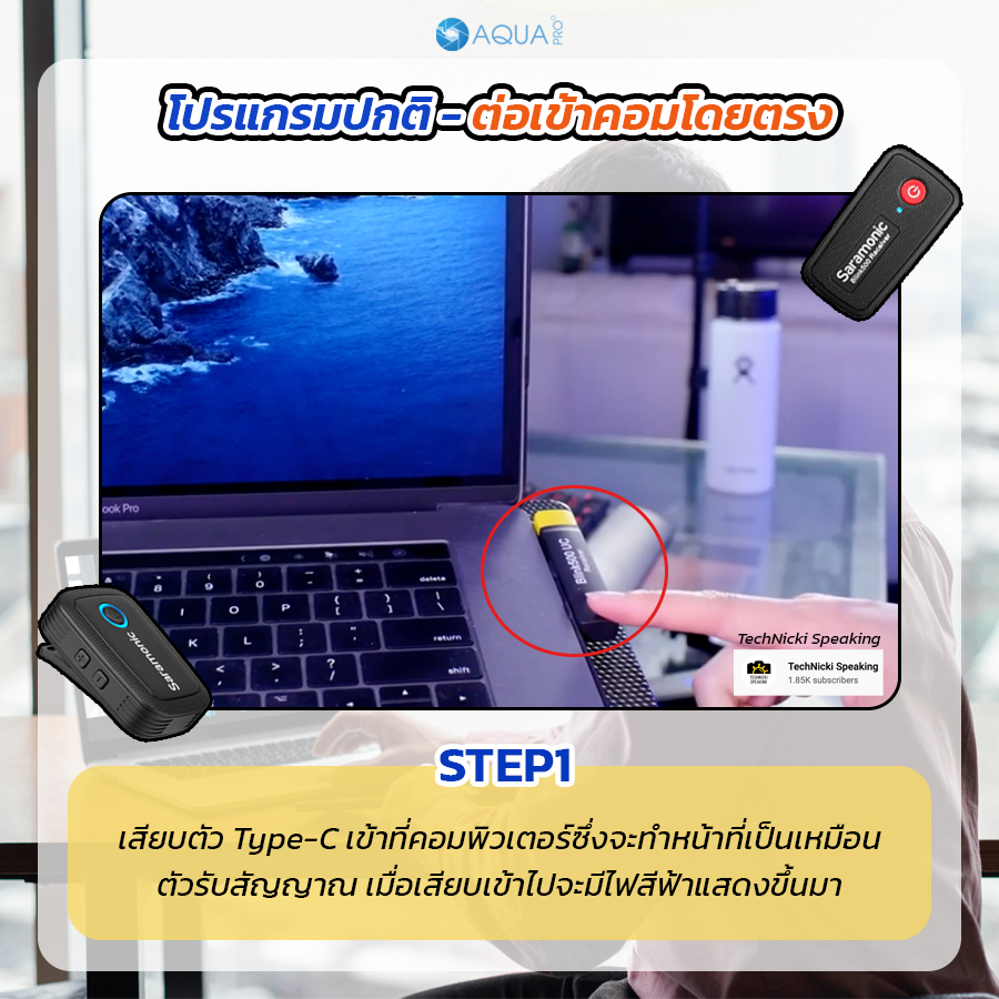 ในช่วงนี้ถึงแม้สถานการณ์ในประเทศจะดีขึ้นบ้างแล้ว แต่ก็ยังมีหลายที่ที่ยังให้เราทำงานอยู่กับบ้านโดยเฉพาะการประชุมออนไลน์ การนำเสนอออนไลน์ หรือ ทำคอนเทนต์ไลฟ์สด สตรีมมิ่ง แต่เสียงกับไม่เป็นใจทำให้วิดีโอที่ออกมาเฟลไม่เป็นท่า เพราะว่าส่วนใหญ่เราไม่ได้ออกไปไหนเลยทำให้เราจะเน้นไปในการใช้คอมพิวเตอร์ หรือ โน๊ตบุ๊คมาก ยิ่งต้องทำงานแบบออนไลน์เสียงยิ่งต้องดี หรือ ถ้าคุณเป็นสายไลฟ์สด สตรีมมิ่งที่ต้องเชื่อมต่อกล้องเข้ากับคอมก็อาจจะต้องการเสียงที่ดี จากบทความก่อนทาง Aquapro ได้แนะนำไมค์ไร้สาย ที่เสียงดีแถมพกพาง่าย น้ำหนักเบาอย่างSaramonic Blink 500 แต่ยังมีหลายคนที่เข้าใจผิดว่า สามารถต่อได้แค่กับกล้อง หรือ มือถือ แต่จริงๆ แล้ว Saramonic Blink 500 ใช้กับคอม ได้เหมือนกันนะ วันนี้เราจะมาบอกวิธีเชื่อมต่อที่ทำได้ภายในไม่กี่ขั้นตอน แถมใช้อุปกรณ์ไม่กี่ชิ้น แต่สำหรับใครที่ใช้โปรแกรมสตรีม หรือ ต้องถ่ายแบบเห็นตัวเรา เช่น การใช้โปรแกรม OBS ก็อาจจะต้องใช้อุปกรณ์เสริมอย่างกล่อง Video Capture และ สายต่อไมค์เสริมเพื่อที่จะต่อเข้ากับคอม อย่ารอช้าไปดูขั้นตอนการต่อกันเลย!!!